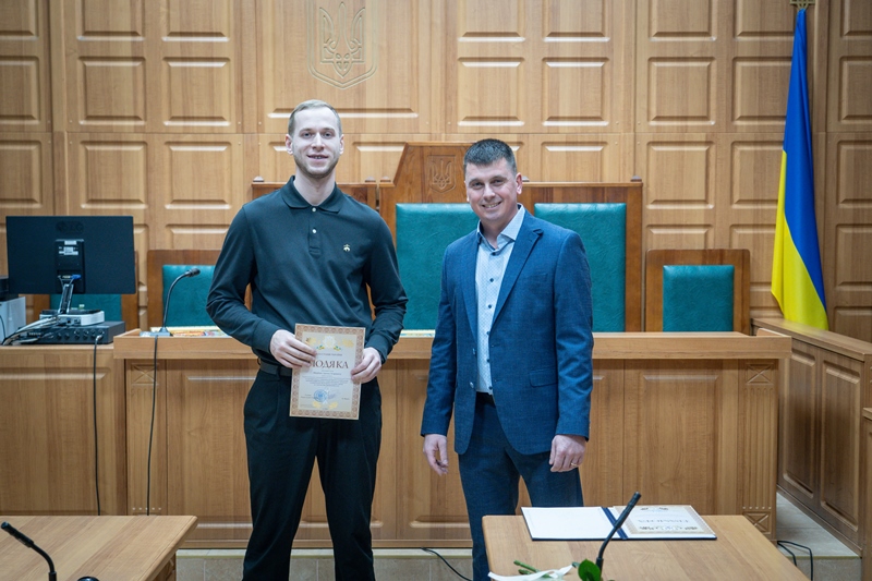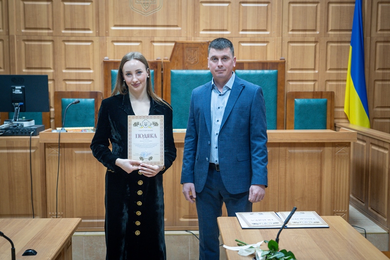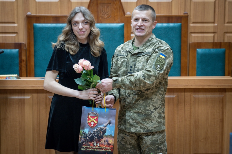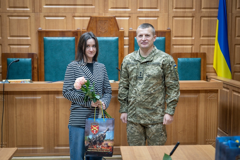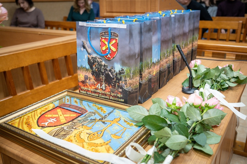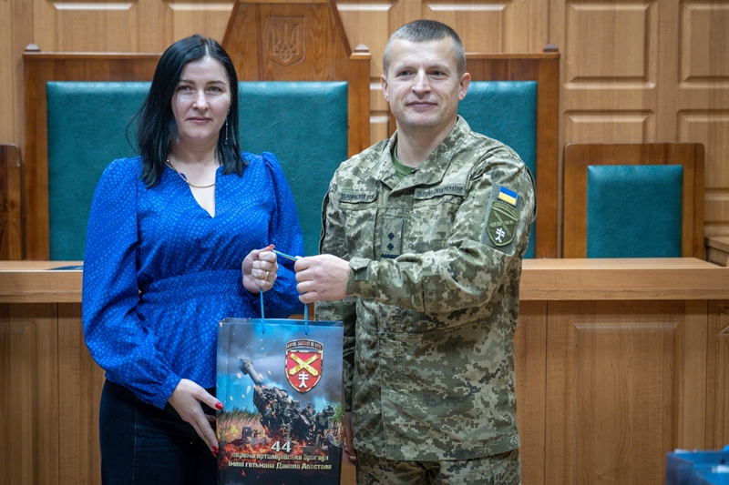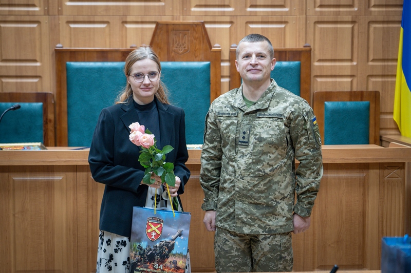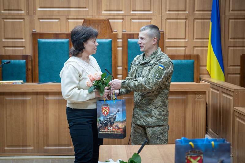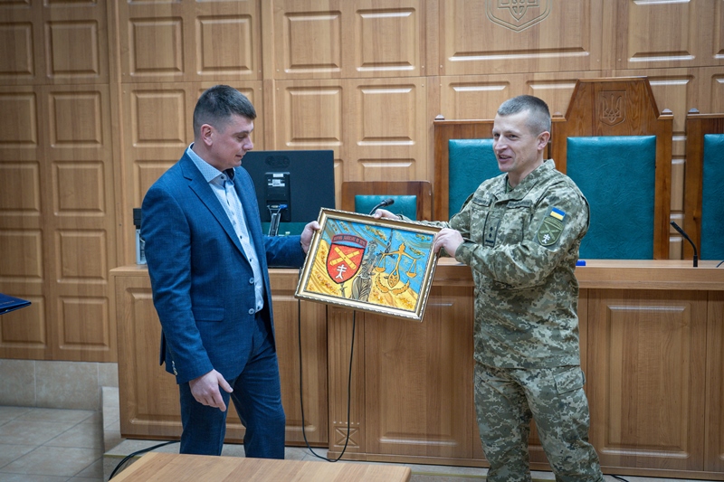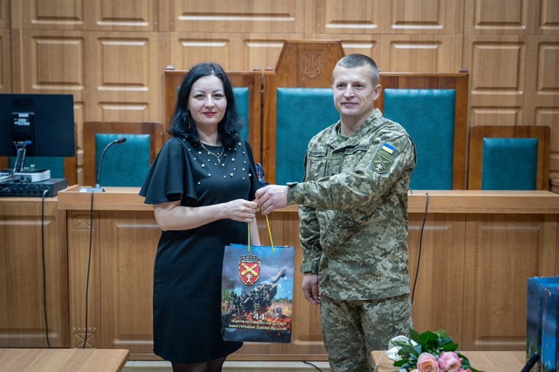 Також, до привітань приєднався командир 44-ї окремої артилерійської бригади імені гетьмана Данила Апостола полковник Роман Дудченко та підполковник Василь Гаджега. З словами підтримки й поваги до працівників суду звернувся Василь Гаджега, який побажав колективу наснаги, стійкості, професійних здобутків і якнайшвидшої перемоги та миру в Україні.